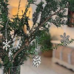 Wähle eins von sechs Designs aus. Im Anschluss wählst Du die gewünschte Farbe aus – Naturfarben oder gebeiztes Goldteak. Du erhältst dann sechs gleiche Schneeflocken-Anhänger im Set, die Dir eine besinnliche Atmosphäre in der Winterzeit bescheren.