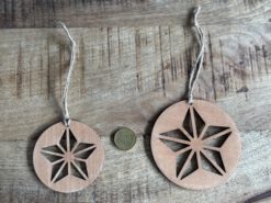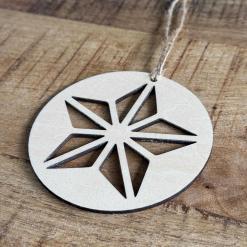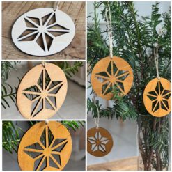 In zwei verschiedenen Größen erhältlich, besticht der Anhänger durch seine natürliche Holzfarbe, die eine warme, rustikale Note in Deine Weihnachtsdekoration bringt. Für Liebhaber individueller Akzente biete ich zudem eine elegante Variante in gebeizter Buche oder Goldteak an.
