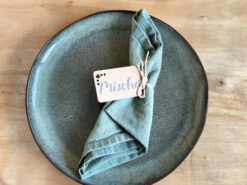 Entdecke diesen stilvollen Kraftpapieranhänger, der an einer Seite mit liebevoll ausgestanzten Herzchen verziert ist. Dieser hübsche Anhänger kann ganz nach Deinen Wünschen von mir per Handlettering mit einem Namen versehen werden. Er eignet sich hervorragend als Geschenkanhänger, um besonderen Geschenken eine persönliche Note zu verleihen, oder als Namensschild für festliche Anlässe und Feiern. Dank seiner vielseitigen Verwendungsmöglichkeiten kann der Anhänger auch als Platzkarte oder Serviettenring dienen und deinen Gästen ein herzliches Willkommen bereiten. Das natürliche Kraftpapier verleiht dem Anhänger einen rustikalen Charme und passt ideal zu verschiedenen Dekorationsstilen – von boho bis natürlich. Setze mit diesem individuellen Anhänger persönliche Akzente bei besonderen Gelegenheiten!
