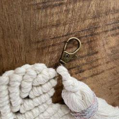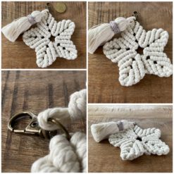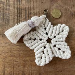 Entdecke diesen zauberhaften, handgefertigten Makramee-Stern, der mit viel Liebe zum Detail geknüpft wurde. Mit seiner kompakten Größe ist er der perfekte Begleiter für deine Tasche und verwandelt jeden Look in einen stilvollen Hingucker. Der kleine Karabinerhaken ermöglicht dir eine einfache Befestigung, sodass du diesen einzigartigen Stern überallhin mitnehmen kannst. Aus 100 % natürlichem Baumwollgarn gefertigt, strahlt dieser dekorative Stern mit charmanter Quaste eine boho-inspirierte Ästhetik aus. Die kunstvollen Knoten und die feine Struktur verleihen ihm eine ansprechende Textur und das Glitzergarn an der Quaste zaubert das gewisse Extra in Deinen Look. Ob als Accessoire für deine Handtasche, als Reißverschlussanhänger oder als Geschenk für einen lieben Menschen – dieser Makramee-Stern bringt Freude in deinen Alltag. Lass dich von seinem kleinen, aber feinen Charme begeistern.