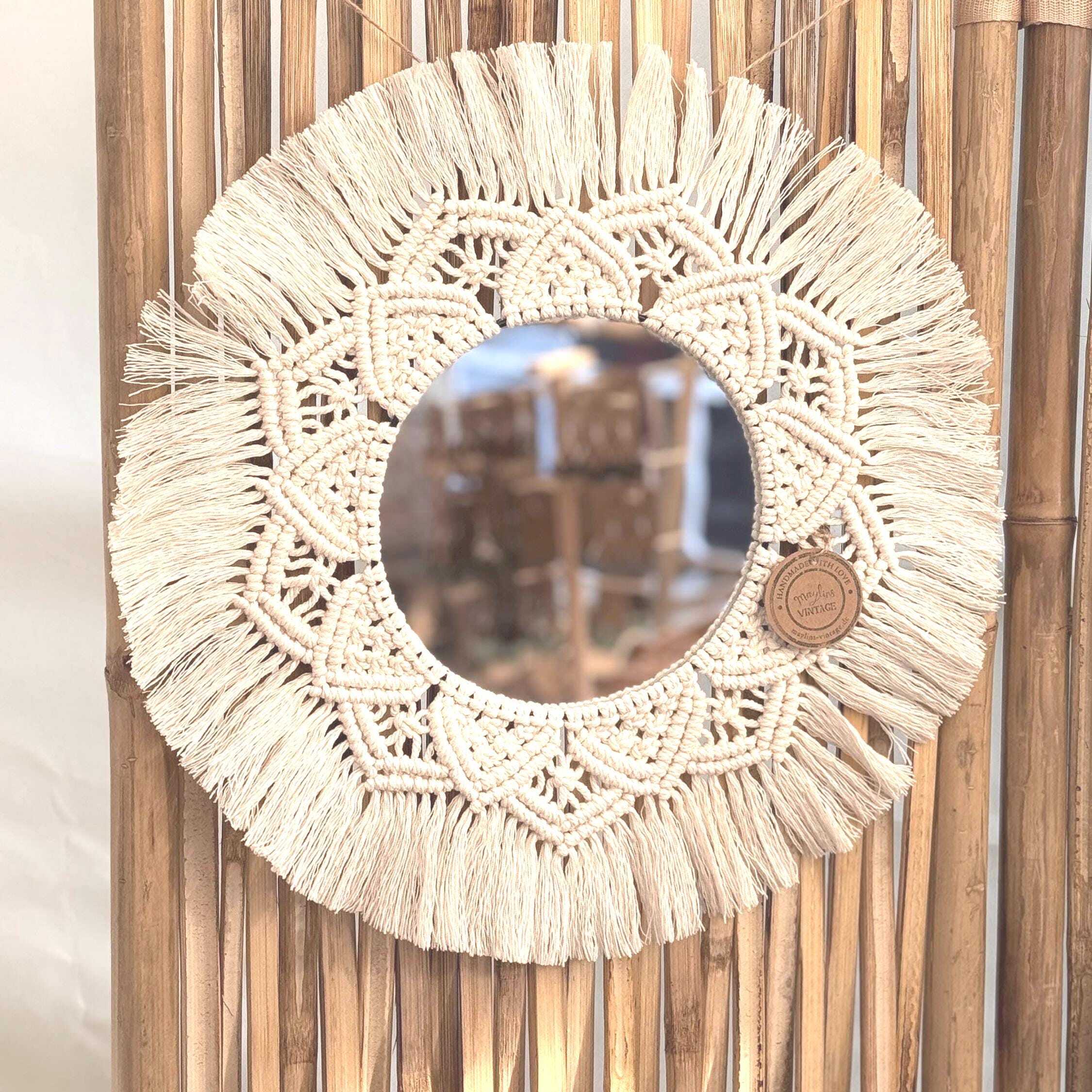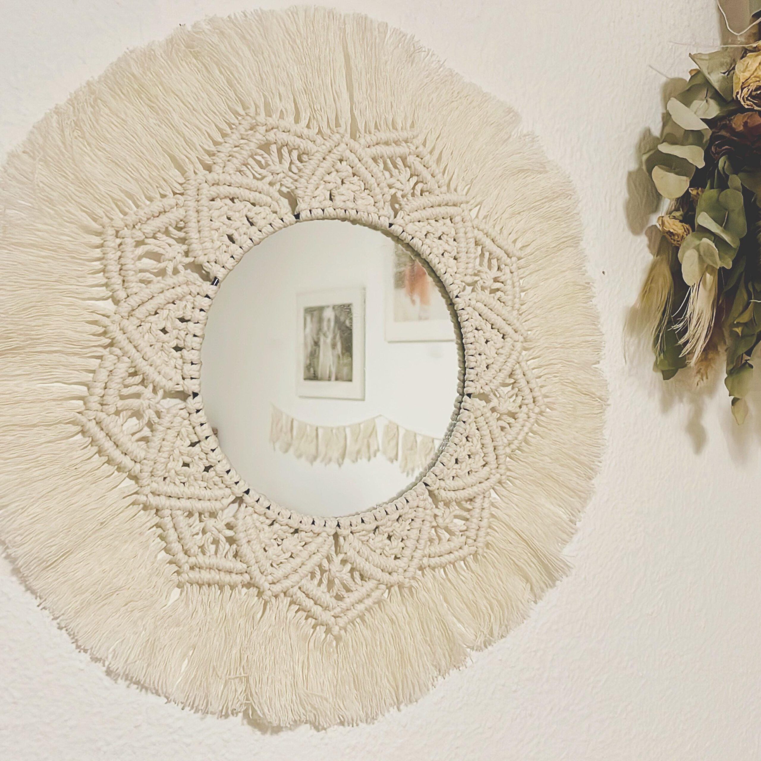 Keywords: Boho,Deko,Hochzeitsdeko,Kreis,Makramee,Mandala,Spiegel,Wandbehang,Wanddekoration