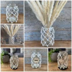 Keywords: Boho,Deko,Geschenk,Hochzeit,Ibiza,Makramee,Maritim,Stern,Vase,Windlicht,Trockenblumen,Teelichthalter,Netzmuster